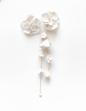 Aretes florales mini,  elaborados a mano. Su acabado delicado y su color intenso los convierten en el accesorio perfecto para looks navideños elegantes y llenos de encanto. El earcuff lo encuentras por separado